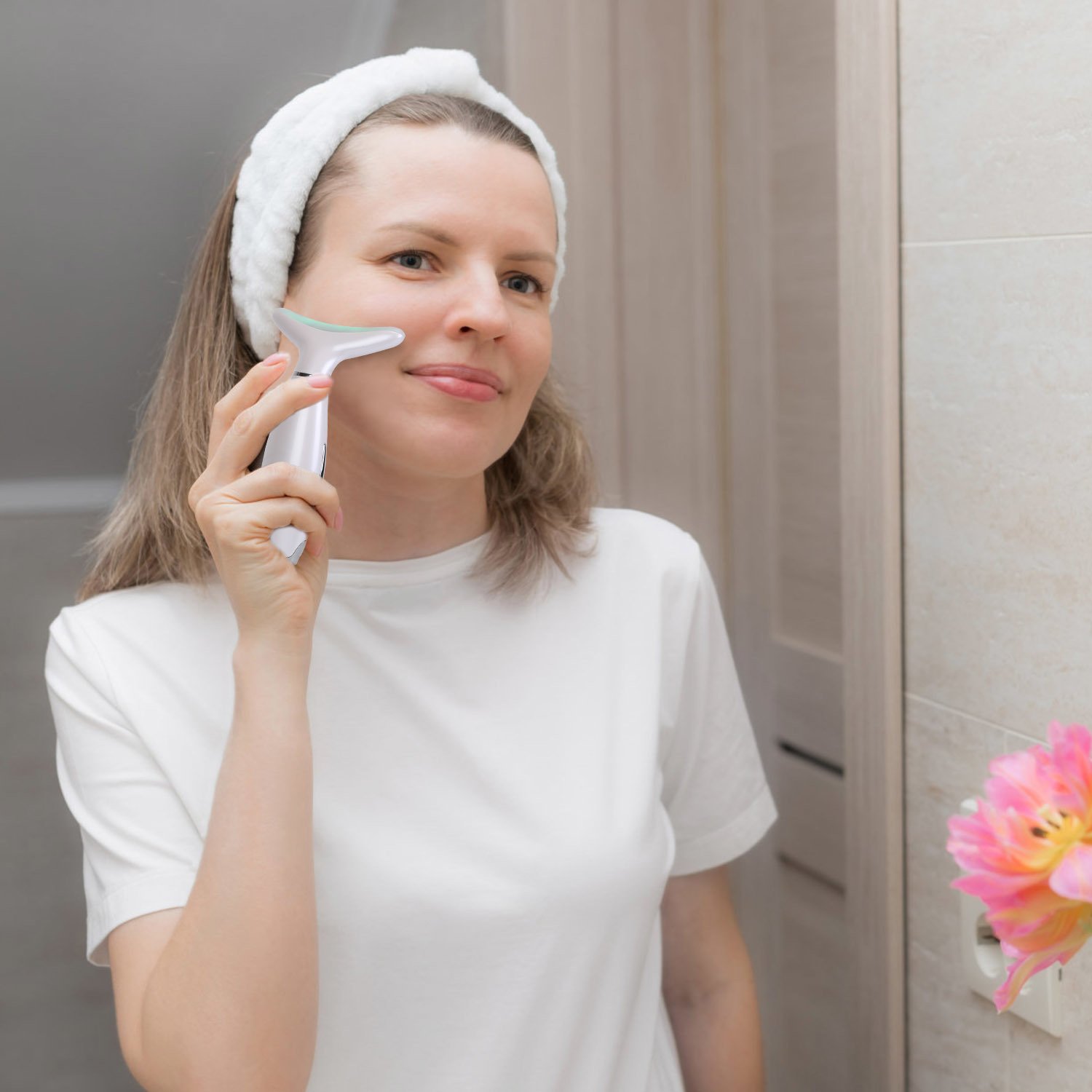 *Ergonomic Dolphin Bionic Design*:The facial massager is designed like a dolphin with smooth curve which matches the neck perfectly; which can deeply touch and improve the neck skin for the best effect.