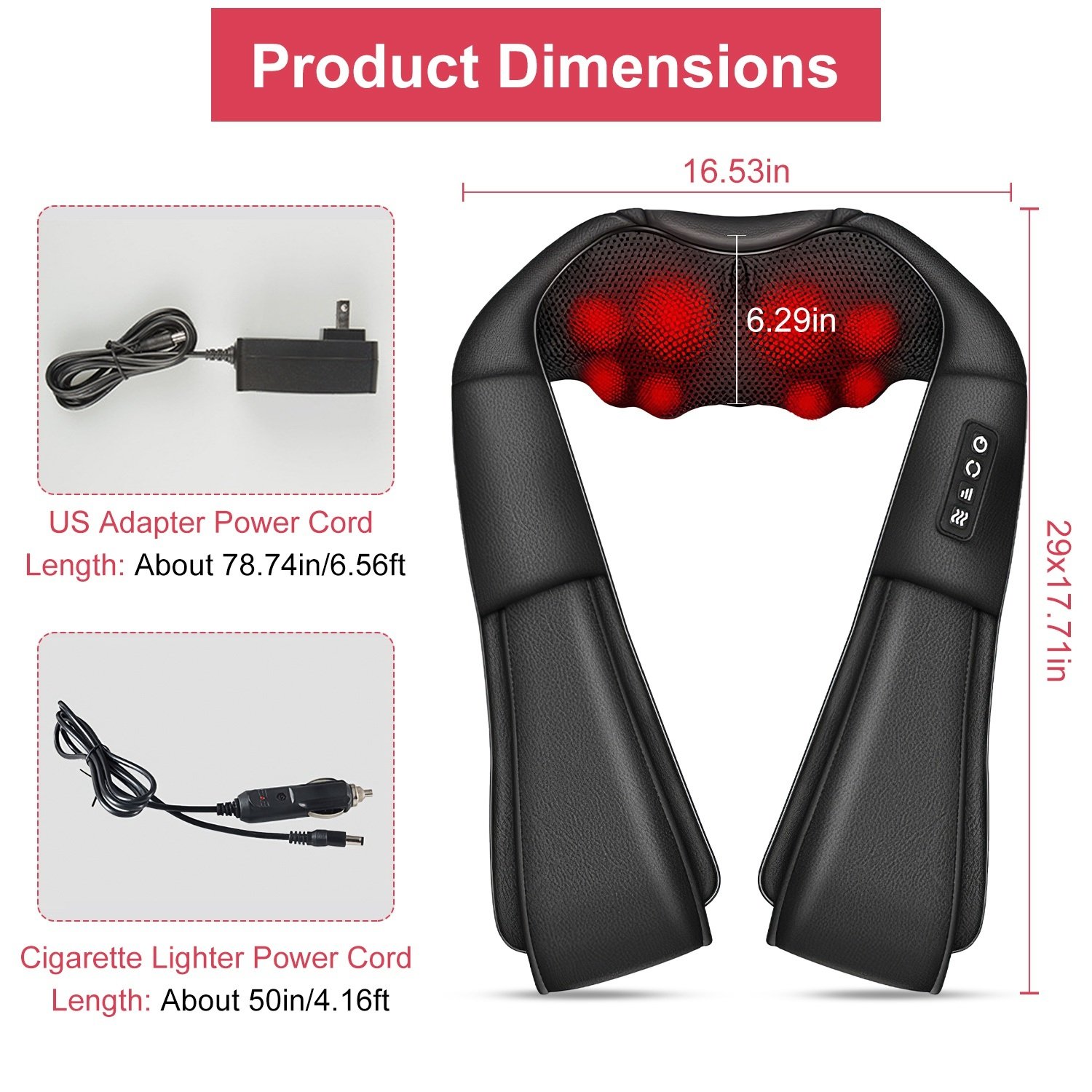 *Multiple Use & Ideal Gift*:Included US adapter power cord and cigarette lighter cord make this heating neck massager can be used in car,home and office. No need to spend expensive money and available time for massage shop,enjoy your personal massage anytime and anywhere. Besides,this kneading massager is a perfect gift for family and friends in Thanks Giving Day,Christmas,Mother’s Day,Father’s Day and so on.