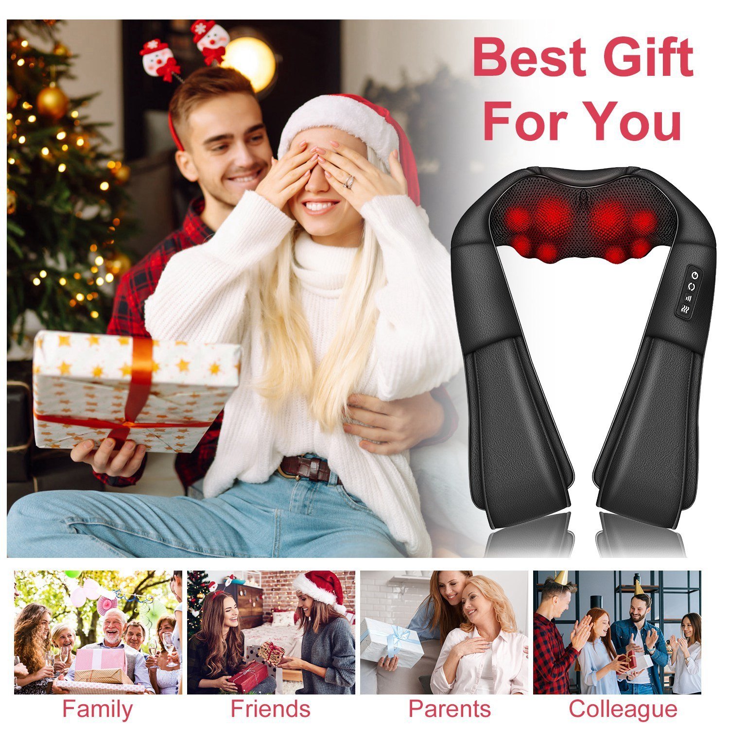 *3D Deep Kneading Massage*:Our ergonomic U-shaped shiatsu massager is made of soft PU leather and breathable mesh fabric,skin-friendly material brings you 3D deeply comfortable massage experience. Perfect to release the tightness,soreness and tension of neck,shoulders,back,waist,thighs,calves,feet,arms,etc. after all day long working.