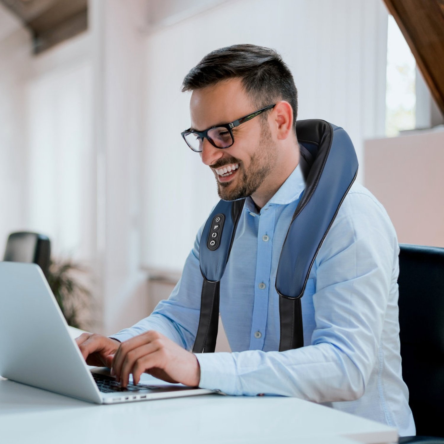 *Deep Kneading Massage*:Featured with soft PU leather and breathable knitted fabric,our neck massager provides you skin-friendly wearing feeling and comfortable massage experience. Suitable for people who are suffering from the pain of neck,shoulders,back,waist,thighs,calves,feet,arms,etc.,effectively release the tightness,soreness and tension after all day tired working.